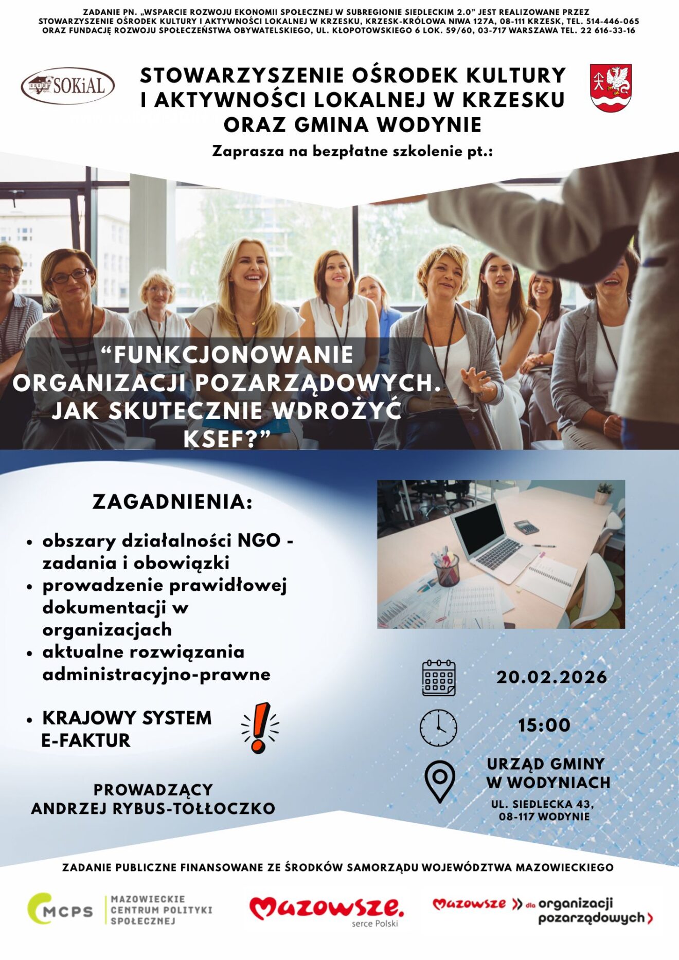 • Funkcjonowanie organizacji pozarządowych. Jak skutecznie wdrożyć KSEF? Zapraszamy na szkolenie. 3 lutego 2026