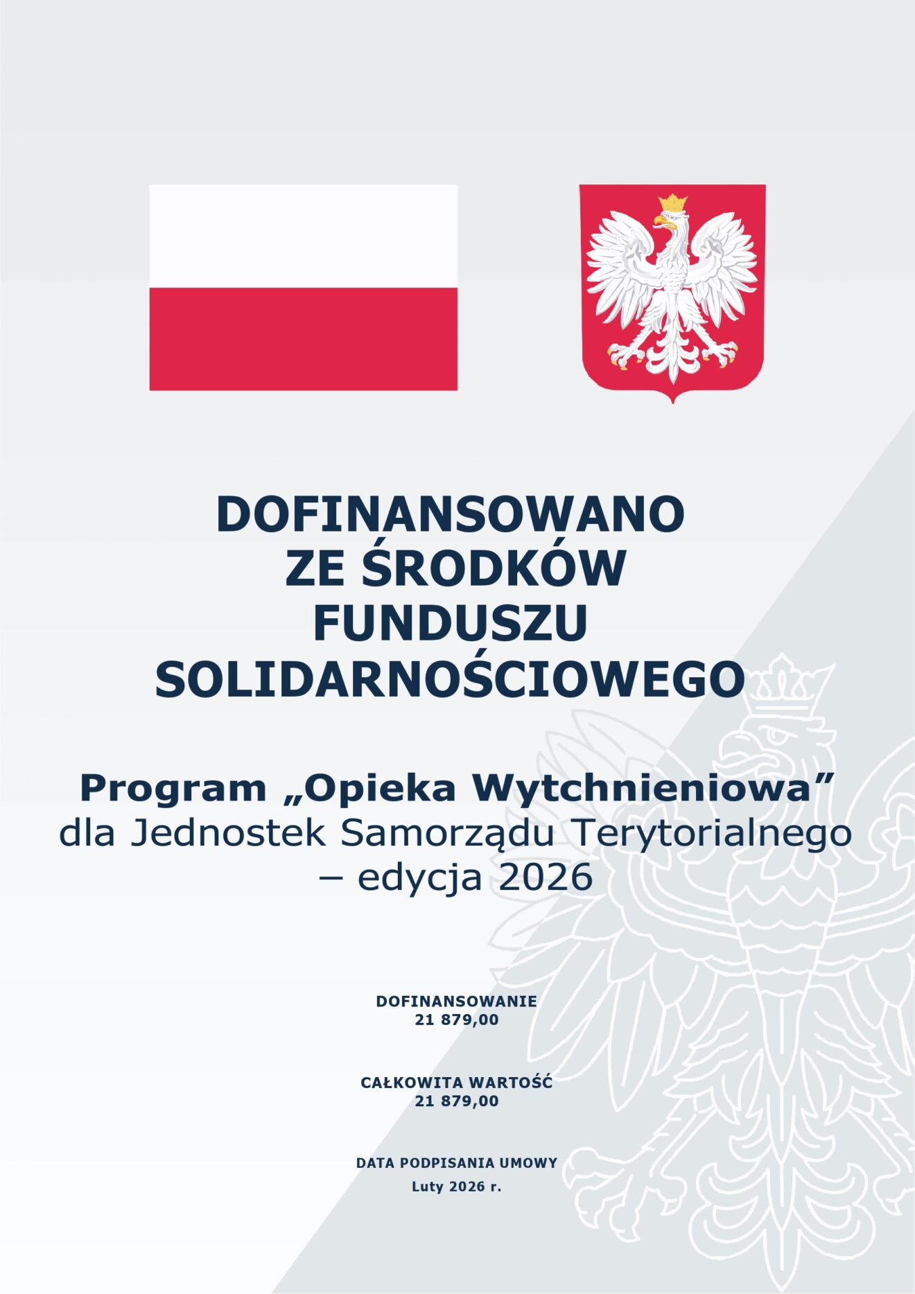 Kwota dofinansowania z Funduszu Solidarnościowego – 21 879,00 zł