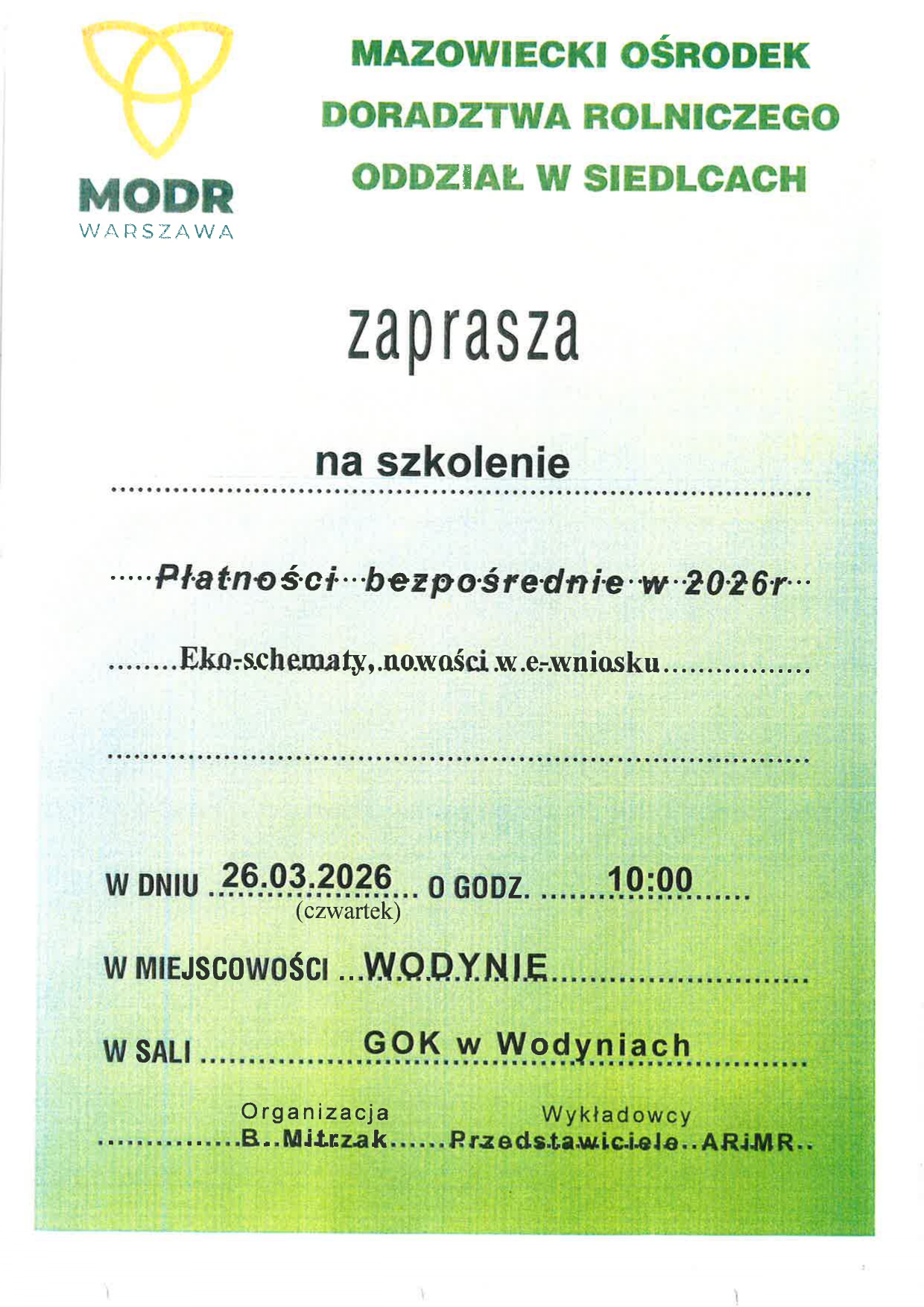 Płatności bezpośrednie w 2026 r. MODR zaprasza na szkolenie!
